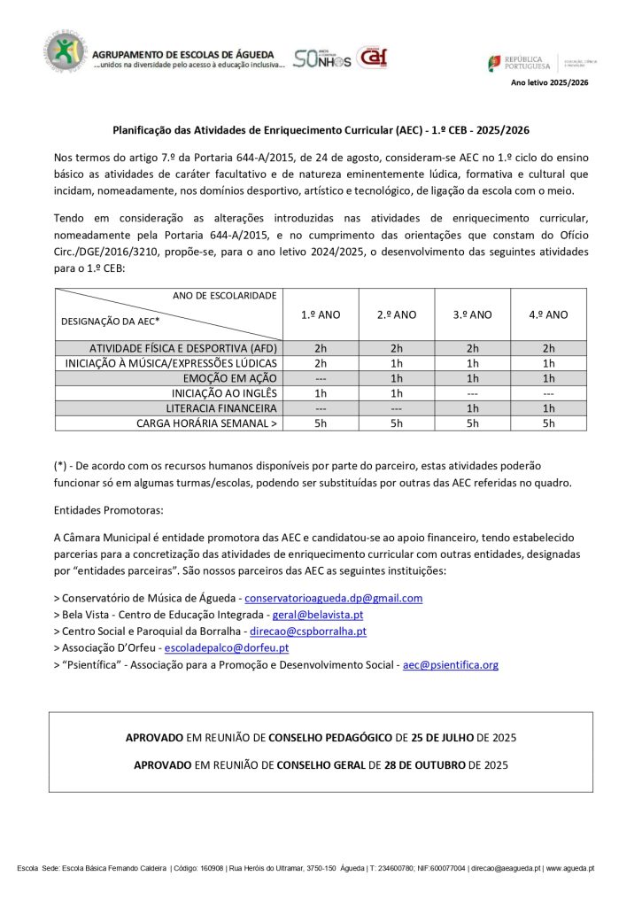 Clique aqui para aceder ao Regulamento das Atividades de Enriquecimento Curricular (AEC) 2025/2026