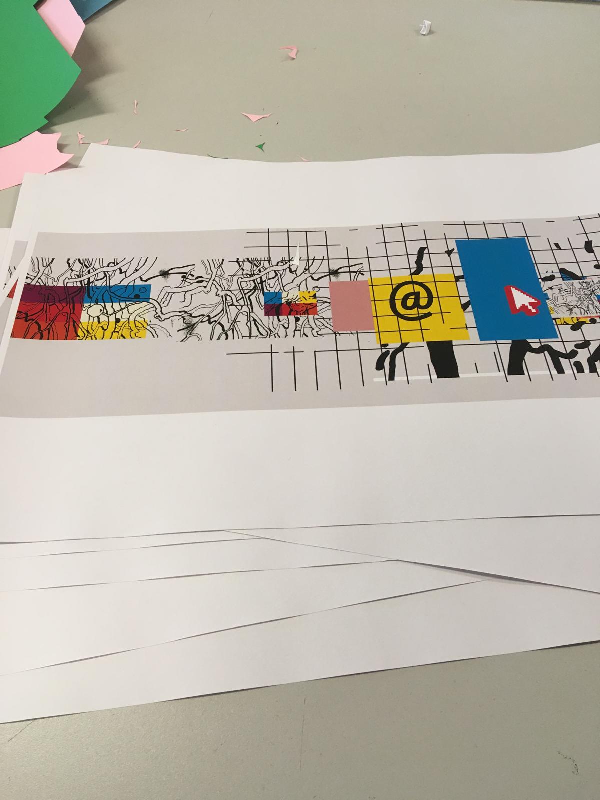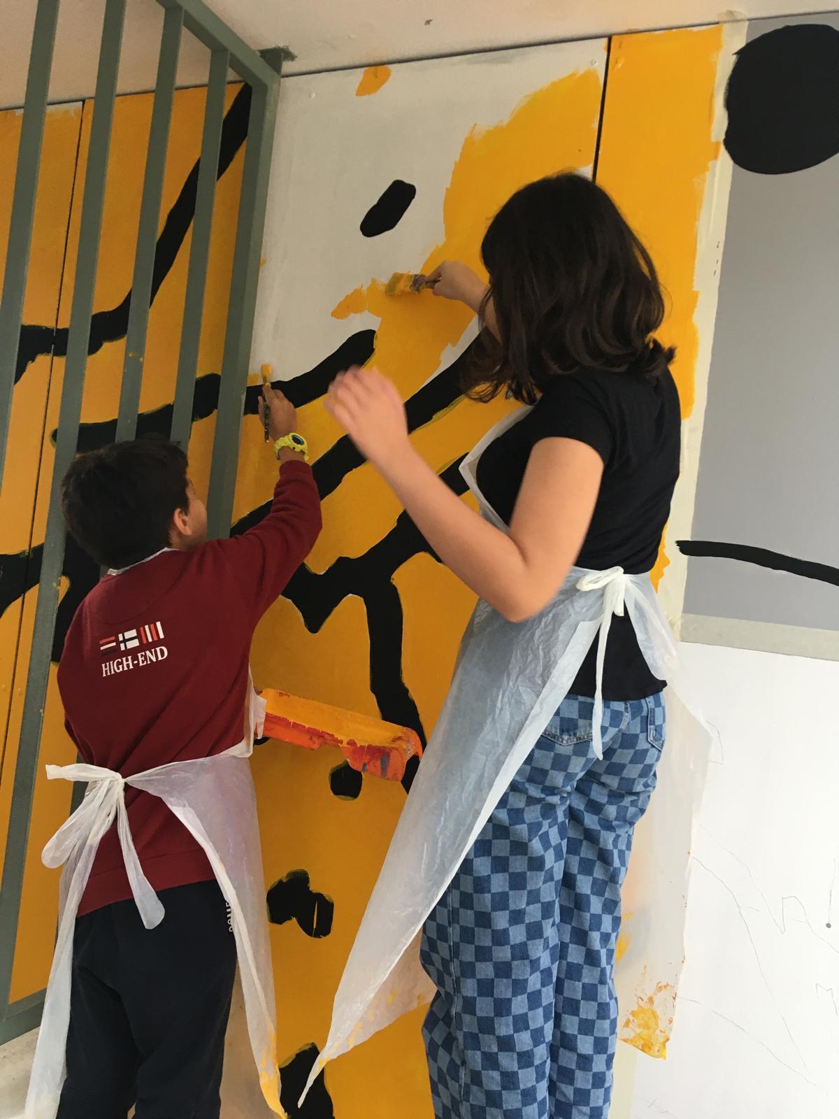 Educação Visual, participaram na criação do mural. Trabalharam em conjunto com o artista convidado, Tiago Hesp, explorando o tema a partir de um exercício de brainstorming, levando-os a uma reflexão sobre a temática para apresentação das suas ideias. Para a elaboração do pré-projeto, os alunos experimentaram, ao longo das sessões, várias técnicas artísticas e criadoras, tais como o recorte, a pintura e a colagem.